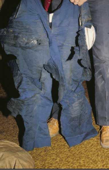 Look at this coverall of an operator wearing a cotton/poly mix. Fortunately, his long underwear prevented more severe burns.